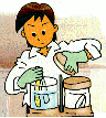 0.1%次亜塩素酸ナトリウム液(有効塩素濃度1.000ppm)中に10分間浸します。